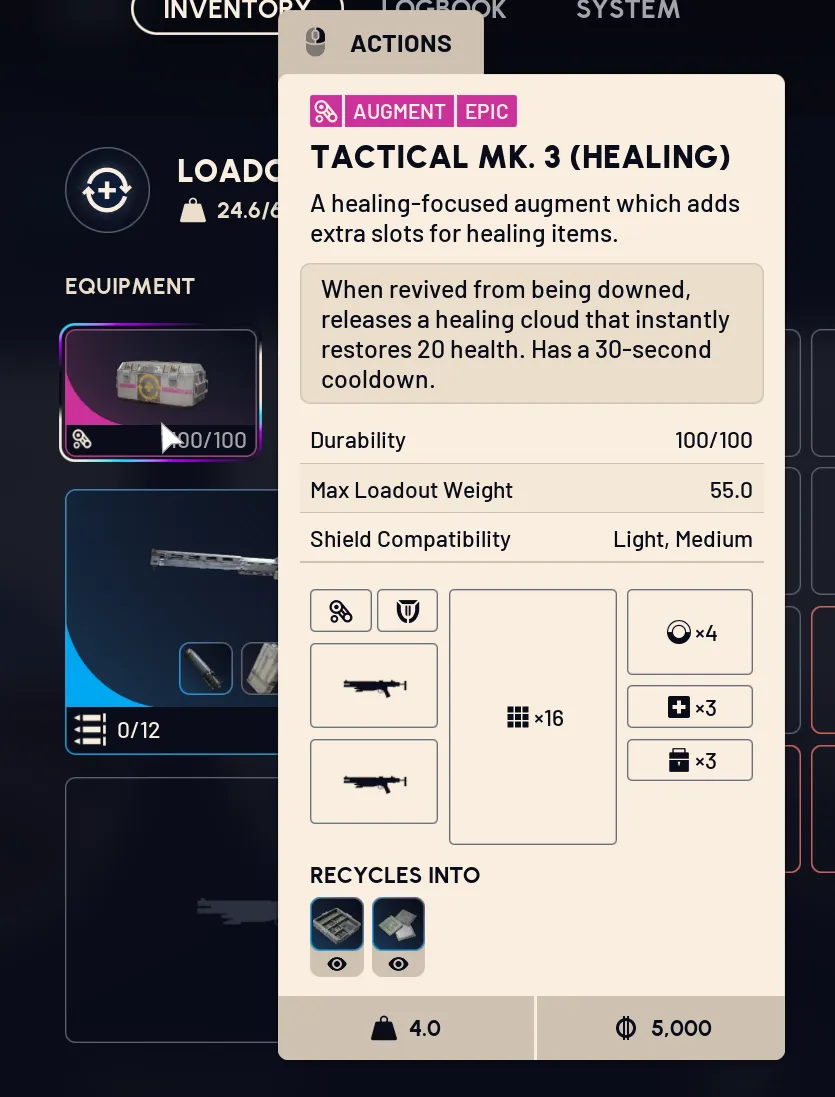 There are some items called "Augment". Those are like your base equipment, and they offer different capabilities, slots, maximum loadout weights... Also shares the same item levels as others. The higher, the better (more slots, passives, effects...)